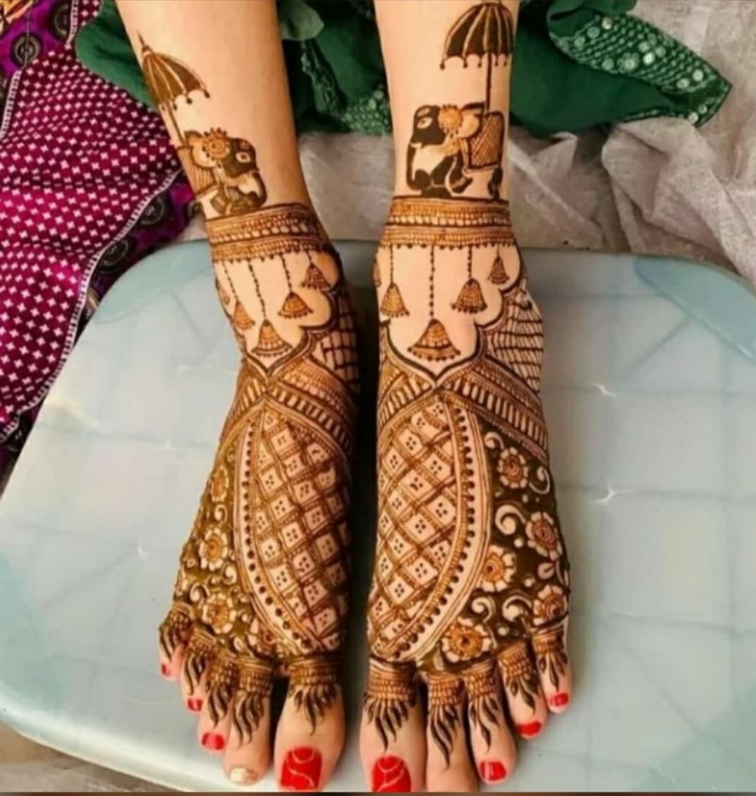 the strange regular Bridal Mehandi Designs in Mumbai on the feet.